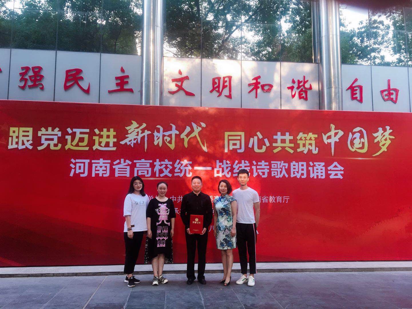 6月2日,我校选派音乐学院四名教师组成的代表队,参加了在河南师范大学举办的以“跟党迈进新时代、同心共筑中国梦”为主题的全省高校统一战线诗歌朗诵会决赛,并荣获了二等奖。