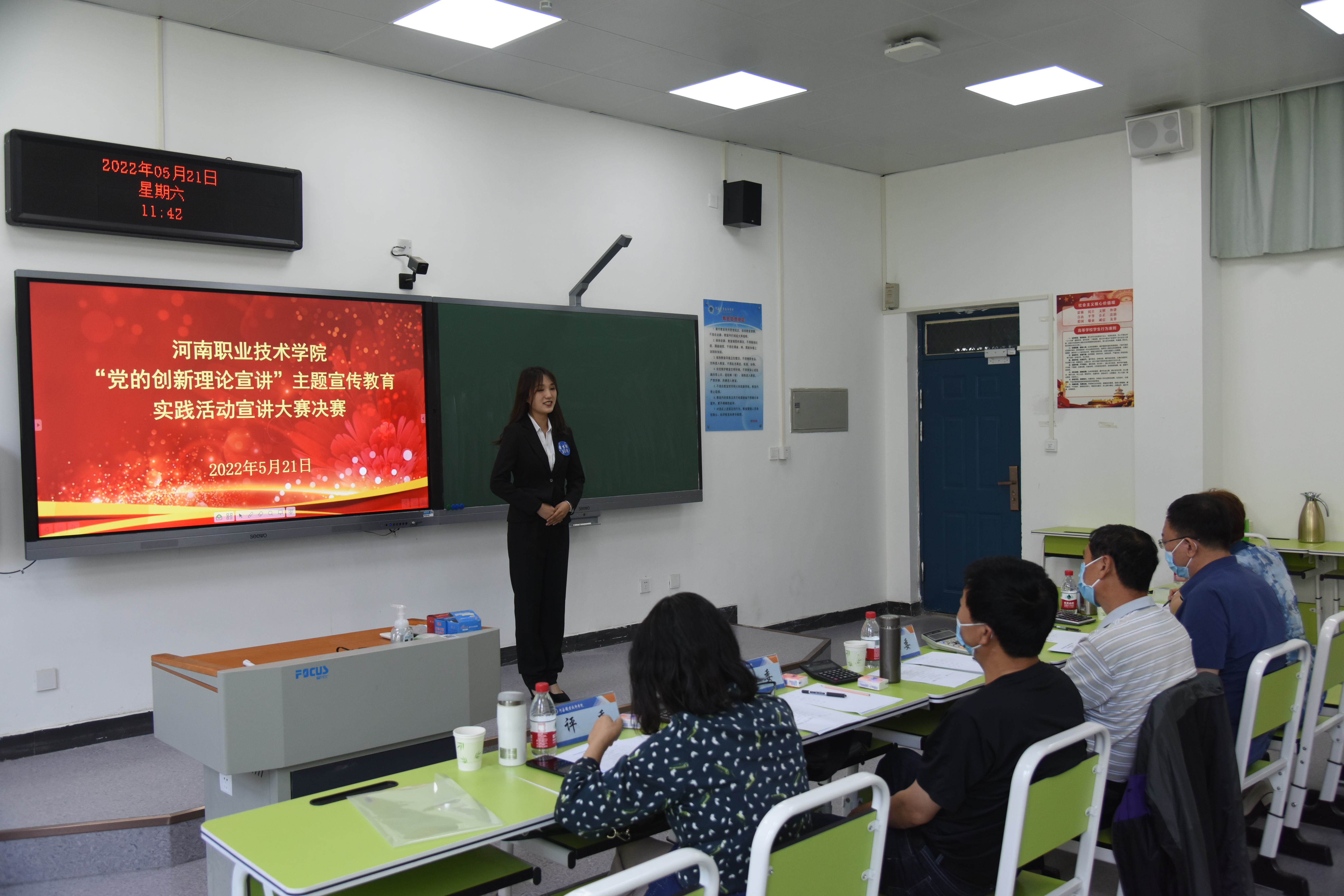 进入决赛的13位教师选手和12位学生选手紧紧围绕习近平新时代中国特色社会主义思想的核心要义、精神实质、丰富内涵以及在河南的生动实践开展宣讲,充分展示党的创新理论的真理和实践力量。作品用小切口呈现大主题,用小故事反映大变化,从师生视角出发,充分运用鲜活语言刻画生动的人物形象,增强宣讲感染力。宣讲既有理论高度,又紧贴实际,参赛师生通过讲述先进典型、生动事例,表达对党的忠诚、对祖国的热爱、对人民的赤诚、对信仰的坚定,选手们的宣讲声情并茂,情感真挚,给现场评委专家留下深刻的印象。