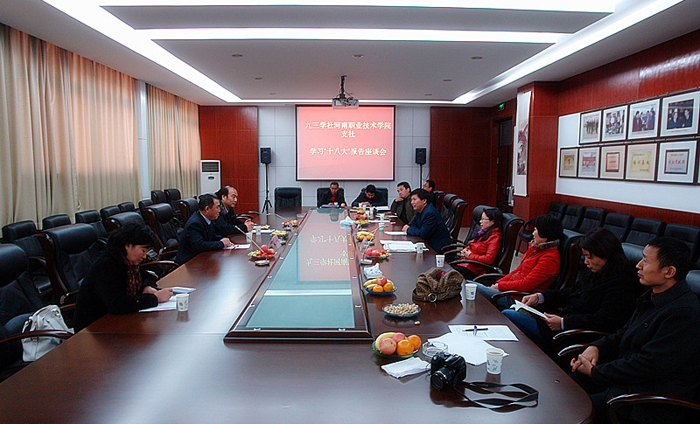 文才艺主委结合九三学社的实际,强调了学习十八大的重要意义,并对我院支社的发展提出了三点希望:一是要加强政治理论学习,提高思想认识;二是要加强支社与中共党委、支社与委员会、各支社之间的沟通交流;三是希望支社继续发挥参政党基层组织的作用和自身优势,与共产党同心同德、同心同向、同心同行,坚定不移地走中国特色社会主义发展道路,积极投身服务于中原经济区建设。