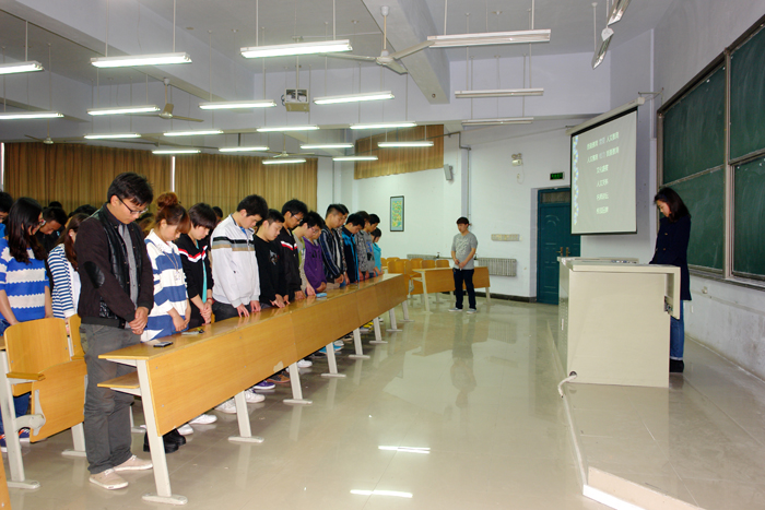 讲座伊始,主持人首先提议与会全体人员一同为雅安地震逝者默哀,为生者祈福。伴随着对逝者生命的惋惜和生者生命的祝愿,讲座正式拉开帷幕。
