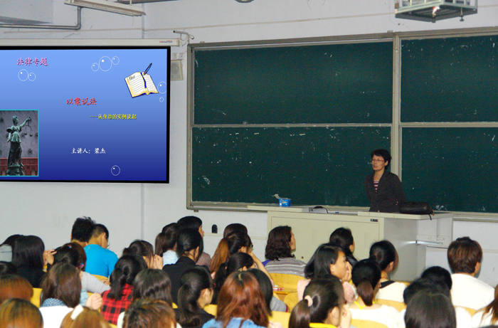 5月9日晚,我院人文大讲堂三场讲座同时开讲。其中,电气工程系党总支书记梁杰副教授首次为工商管理系350名师生作“以案说法——从身边的事例说起”法律专题讲座。有关单位和该系领导参加讲座。