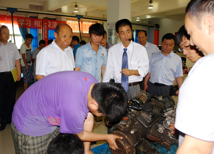 杨盛道厅长一行在院党委书记王长钦、院长王爱群陪同下,实地考察了学院发展成果展厅、汽车和机电实训中心、就业指导中心,并与有关负责人就日常管理和教学工作进行了深入交流。在随后的座谈会上,厅领导一行观看了学院特色办学专题片《技之魂》,听取了王爱群院长关于学院发展建设的工作汇报,对学院的工作提出了具体要求。