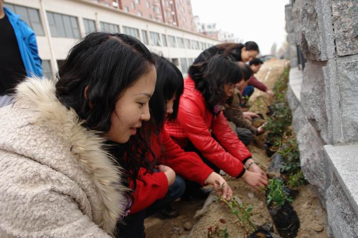 此次种植活动是学院精神文明建设群众性活动之一。在种植现场,志愿者们在花卉园艺师的指导下,分工协作,分拣花苗、挖坑种植。经过近1个小时的努力,圆满完成了种植任务,将学院围墙点缀得春意盎然。