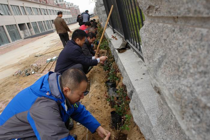 为大力弘扬“奉献、友爱、互助、进步”的志愿精神,3月25日上午,宣传部和后勤管理处牵头组织机关12个党支部和后勤管理处党支部的40余名共产党员志愿者,沿着500多米长的学院围墙义务种植月季花。