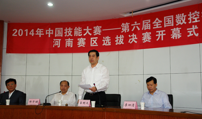 9月26日上午,2014年中国技能大赛——第六届全国数控技能大赛河南赛区选拔决赛在我院拉开帷幕。省人力资源和社会保障厅副厅长郑子健、省总工会副主席吕明义、学院院长李四清等领导出席了开幕式。开幕式由省科技厅总工程师李密科主持。