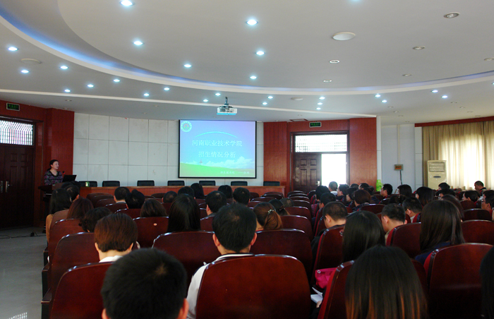 讲座中,张林处长结合多年招生就业工作经验,分别从普通高招和“3+2”升段两种生源结构,介绍了近三年学院的招生总体情况,通过数据对比,分析了各批次招生情况和省内普通专科专业首选情况。她对学院各教学单位在全国及河南生源大幅下降的情况下,不怕困难、迎难而上,积极准备的工作态度和取得的显著成绩给予了充分肯定,同时她也指出,因形势变化、无序竞争、专业志愿不平衡、优势不明显等,致使学院在招生方面存在的问题和危机。针对目前情况,她提出,学院要以国家示范性高职院校、全国毕业生就业典型经验高校等为平台,加强对外宣传,提高学院知名度,要教育全体教职工增强忧患意识,不断加强专业知识技能学习和实践,提高理论教学水平和实践教学技能,促进学院招生就业工作持续健康发展。