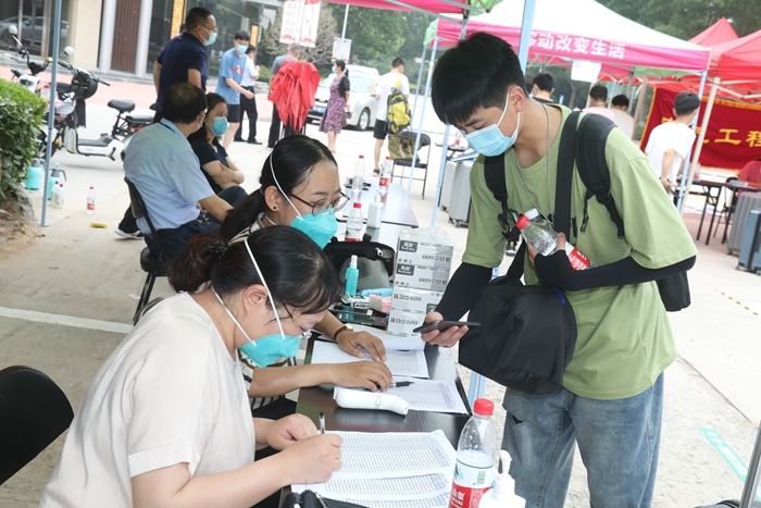 校领导一行实地察看了学生返校过程中的重点环节、风险点和防控点等情况,详细了解同学们假期学习、生活及返校过程;走访二级学院报到点,仔细查看毕业生身份核验、体温监测与报到注册工作,了解整套流程的实施情况,并对一线工作人员进行了亲切慰问。