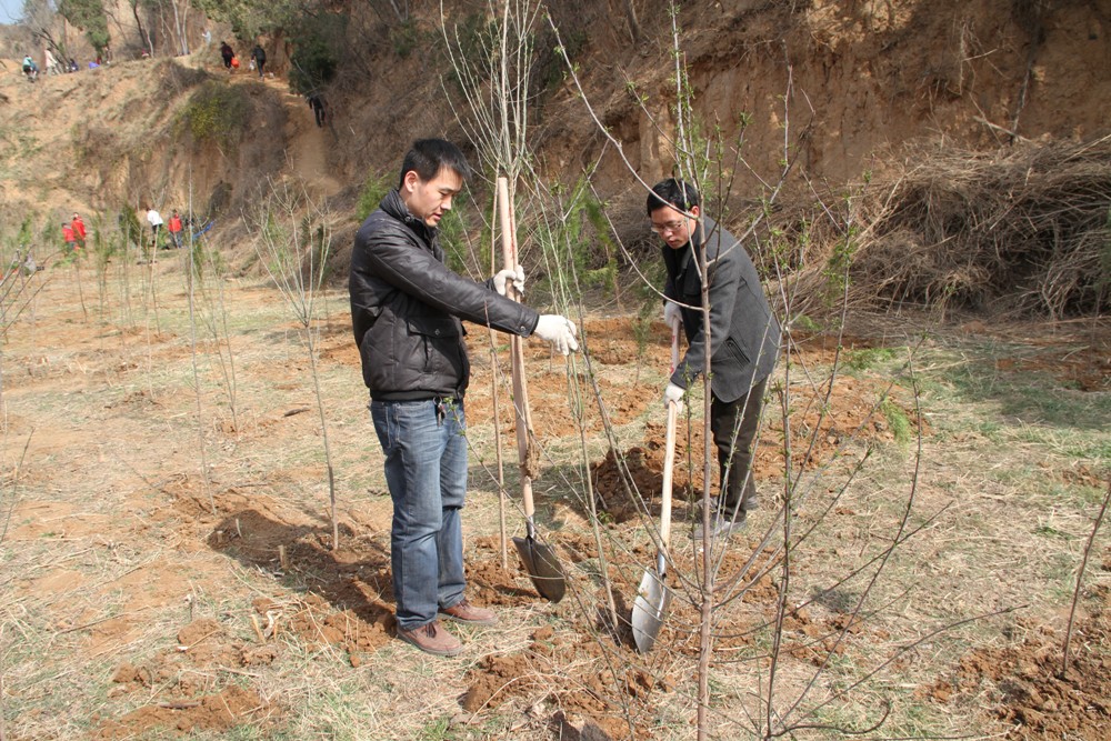 植树现场,我院七位教职工志愿者同省直各单位一起,分工协作,扛树苗、提水、挖坑、种树。经过近2个小时的努力,将荒坡点缀得春意盎然,圆满完成了植树任务。