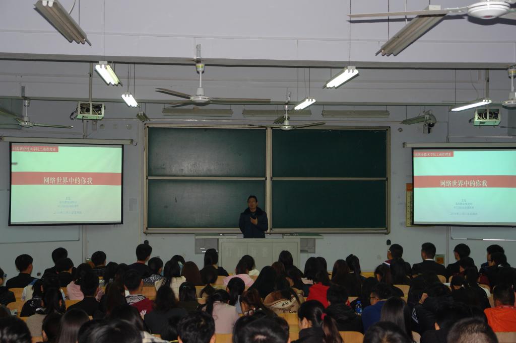 倡导文明办网上网,构建绿色网络空间。11月10日晚,宣传部邀请人事处王冠老师为工商管理系260余名师生,作了题为“网络世界中的你我”的专题讲座,倡导文明上网,传授网络创业技巧,获得听讲师生的一致好评。