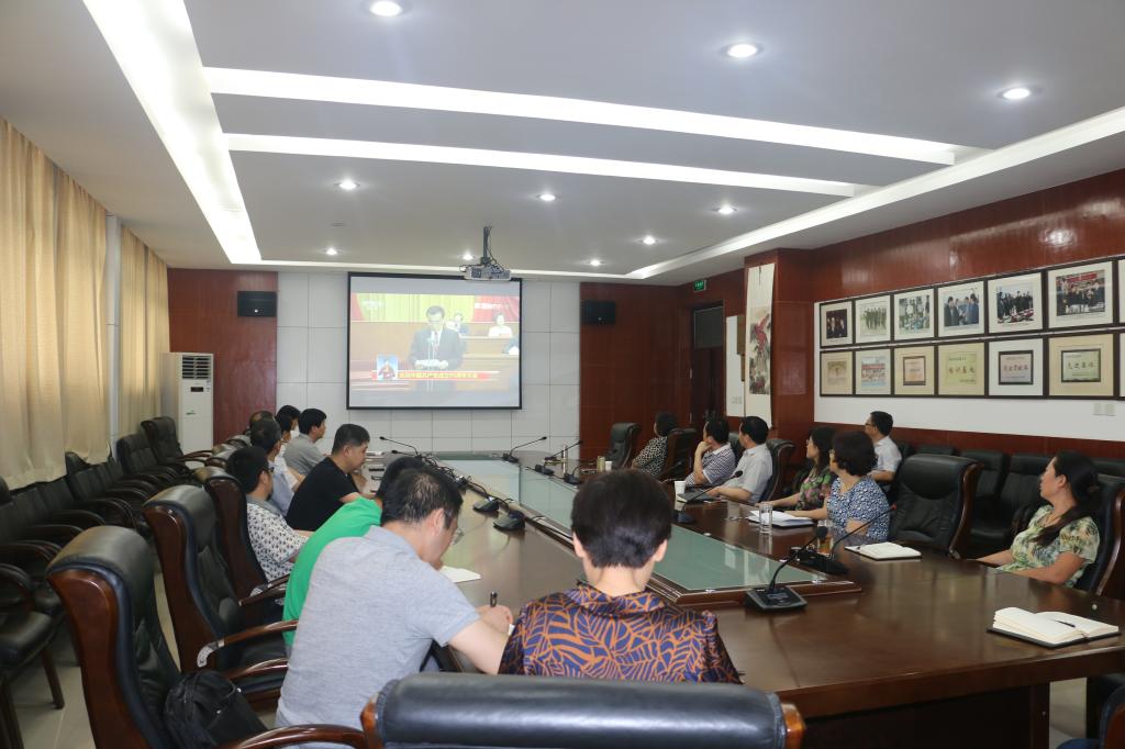 7月1日上午10时,学院领导班子成员和“两学一做”领导小组办公室全体成员,集中收看了在北京人民大会堂隆重举行的庆祝中国共产党成立95周年大会实况转播。