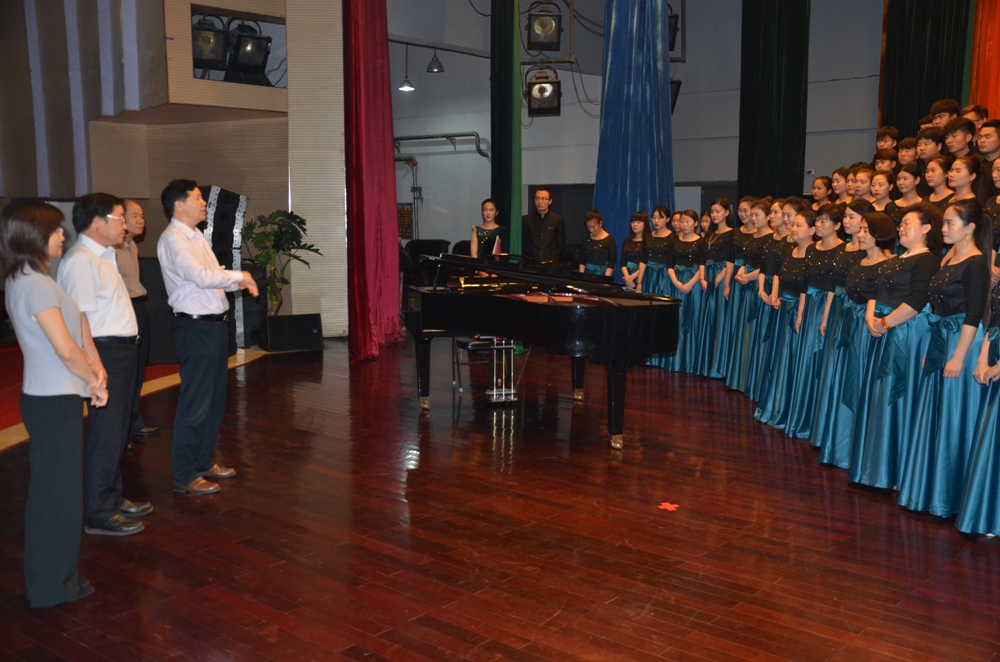 6月2日下午,省人力资源社会保障厅副厅长郭成全和机关党委书记白杨林,在党委书记李四清、院长李桂贞和副院长占江及党政办负责人的陪同下,指导检查了“庆祝建党95周年暨红军长征胜利80周年”合唱团排演工作。