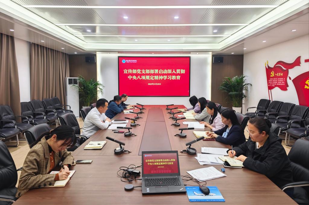 3月25日,宣传部党支部召开学习会,深入学习习近平总书记关于加强党的作风建设的重要论述和中央八项规定及其实施细则精神,传达学习中央、省委、委厅和学校四级党的建设工作领导小组会议精神。党委宣传部负责人吴猛主持会议。部门全体人员参会。