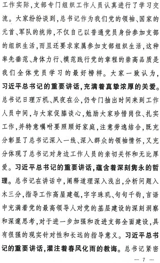 习近平总书记参加所在党支部组织生活会上的重要指示精神