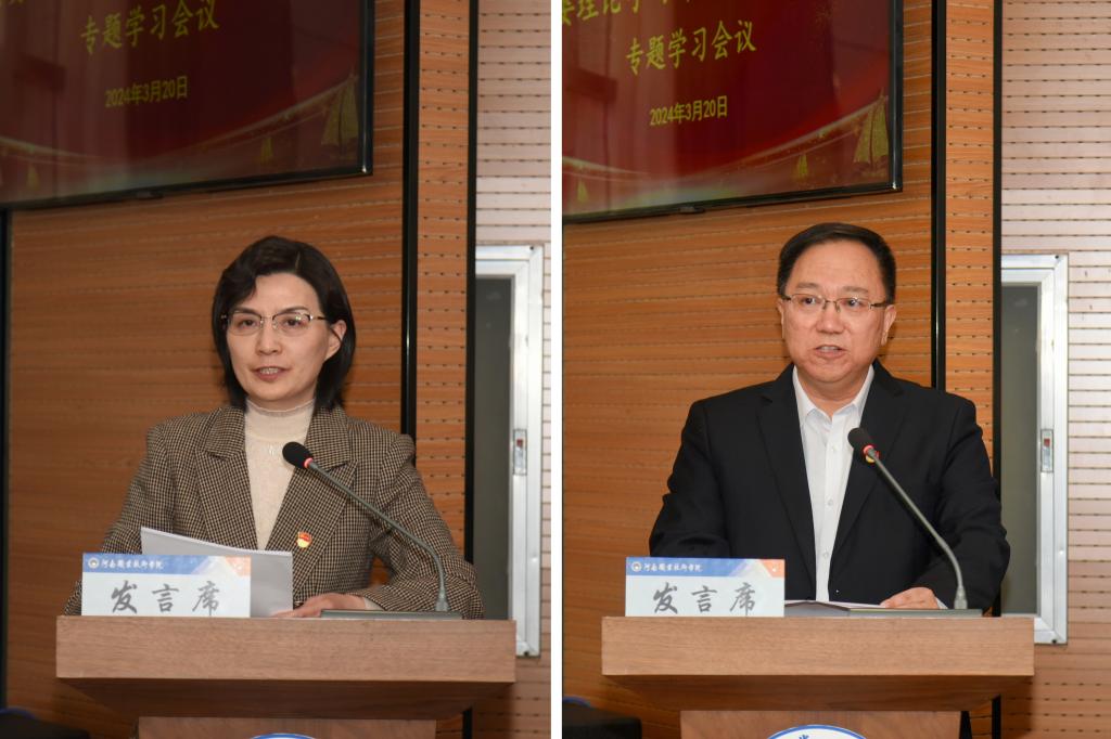 厉励在讲话中结合学习内容和学校当前工作实际,分享了学习心得感悟。他表示,要深刻理解和把握“发展新质生产力”的内涵要义,为学校改革发展增值赋能。要加快专业改造,突出特色,构建差异化竞争“新布局”,解决学校如何建设的问题;要加快产教融合,科教融汇,构建高质量发展“新动能”,解决学校如何发展的问题。要贯彻落实“大力发展职业教育”时代使命,积极回答职业教育的根本问题。两会政府工作报告提出“大力发展职业教育”,进一步为职业教育高质量发展注入强大动力,落实到学校层面就是要坚持好立德树人根本任务;要打造更多时代发展需要的大国工匠,大国制造需要的大国工匠;要面向国家重大战略领域,向“高、精、尖”专业领域转型,培养更多创新人才;要加快数字转型,以一流数字化水平引领支撑河职建设发展全过程。