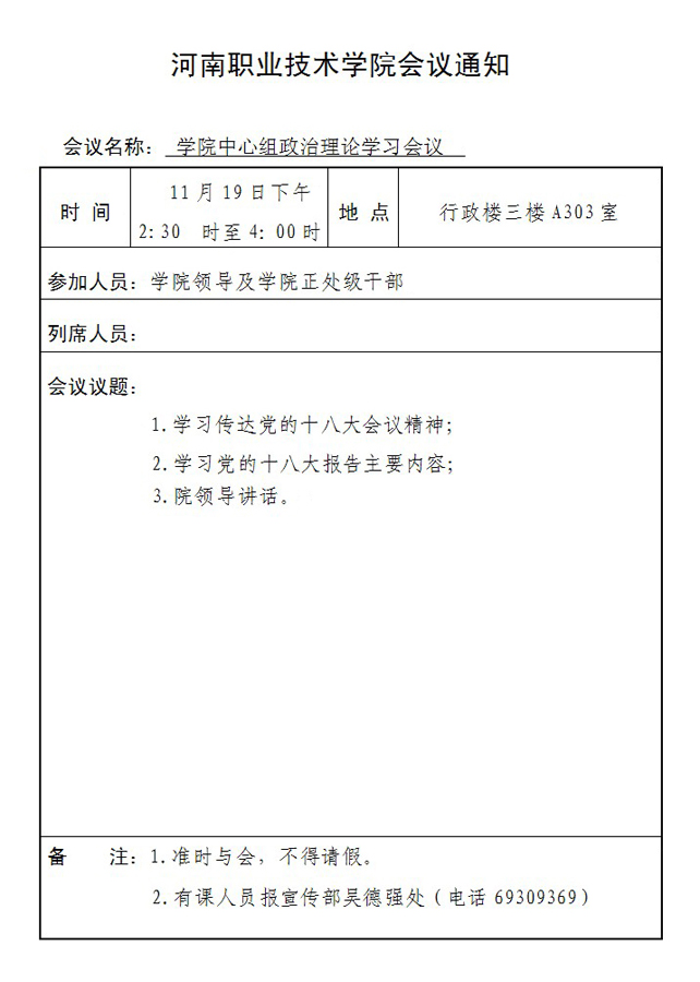 党委中心组11月份政治理论学习的会议通知